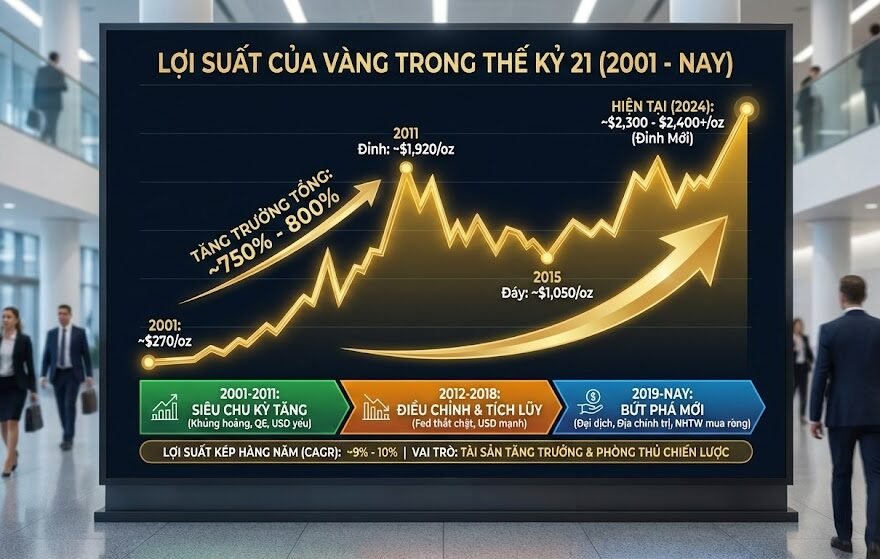 Lợi suất của vàng như thế nào trong thế kỷ 21? Thị trường Vàng bạc Trong đầu tư, đặc biệt là đầu tư dài hạn, tỷ suất sinh lời của một tài sản luôn là yếu tố được quan tâm hàng đầu. Đối với kênh phi rủi ro như gửi tiết kiệm, lãi suất thường khá thấp chỉ từ mức 4 -6%/năm và gần như chỉ vừa đủ hoặc thậm […]